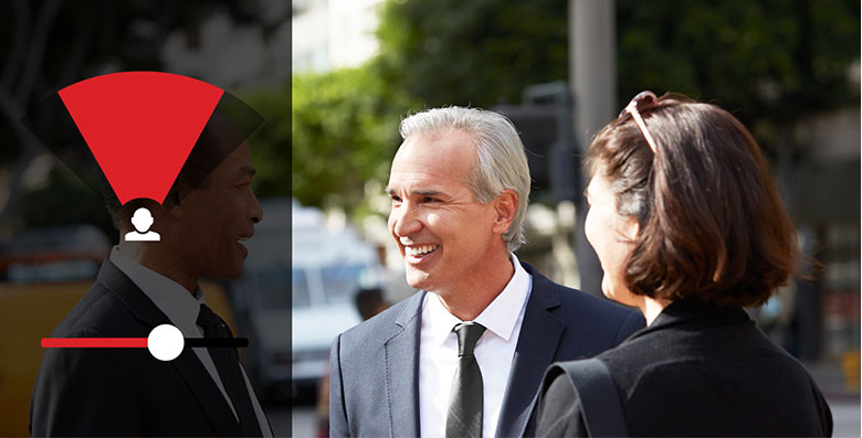 想象一下,将您的注意力集中得 就像投射一束光一样。 言语聚焦功能,使您可以调整 这束光的宽度,来自前方的言语声